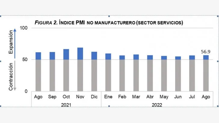 El Banco Central explica que el desempeño económico de los Estados Unidos (EEUU) es uno de los principales factores que sigue incidiendo sobre el comportamiento de las remesas, ya que desde ese país provino el 84.0 % de los flujos de agosto. Durante dicho mes, el PMI no manufacturero del Instituto de Gerencia y Abastecimiento (ISM, por sus siglas en inglés) registró un aumento pasando de 56.7 en julio a 56.9 en agosto, evidenciando así la continua expansión del sector servicios de la economía norteamericana, sector en el que la diáspora dominicana en EEUU se emplea generalmente.